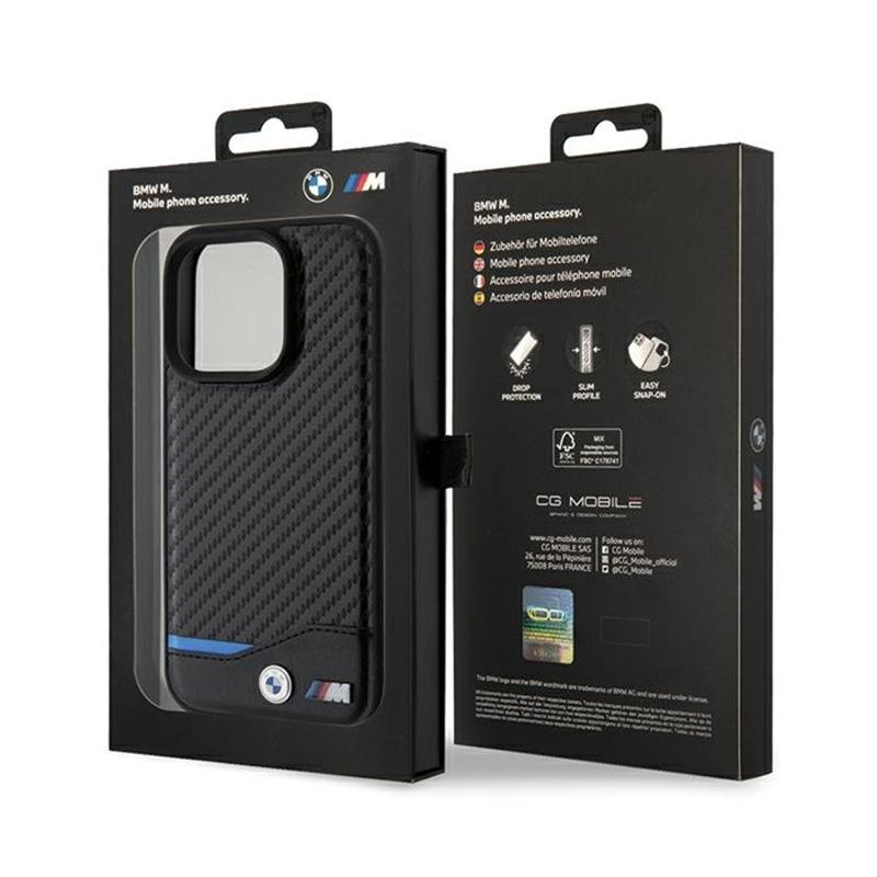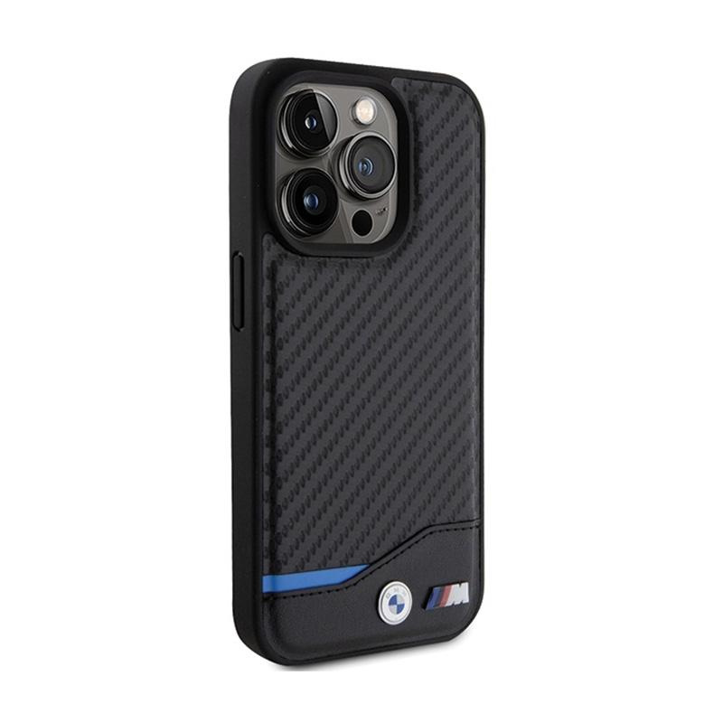 BMW Leather Carbon Blue Line MagSafe - Etui iPhone 15 Pro Max (czarny)
