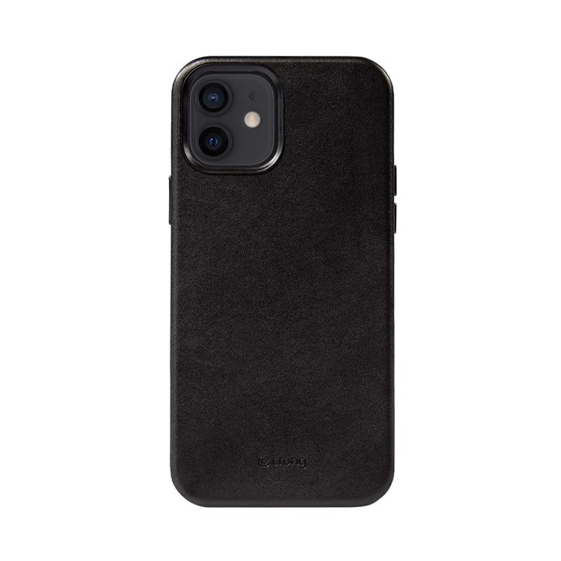 Crong Essential Cover Magnetic - Etui ze skóry iPhone 12 / iPhone 12 Pro MagSafe (czarny)