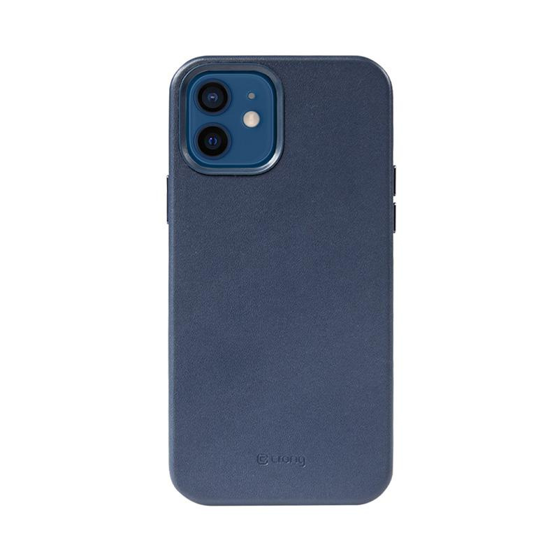 Crong Essential Cover Magnetic - Etui ze skóry iPhone 12 / iPhone 12 Pro MagSafe (granatowy)