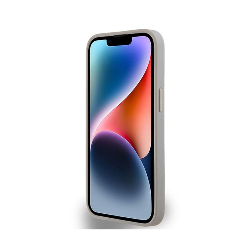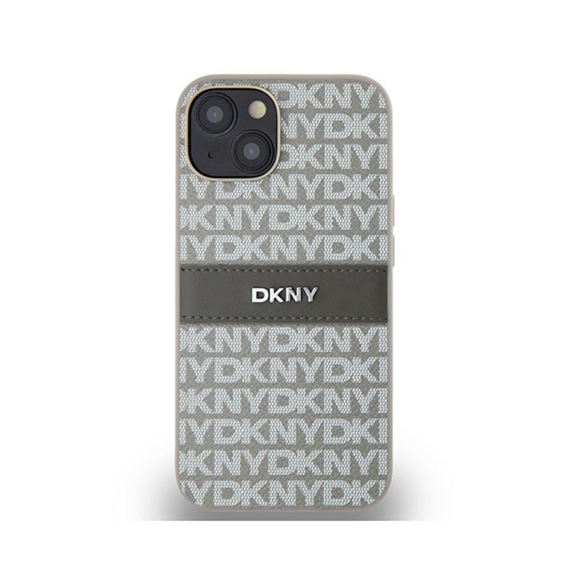 DKNY Leather Mono Stripe & Metal Logo - Etui iPhone 14 / 15 / 13 (beżowy)