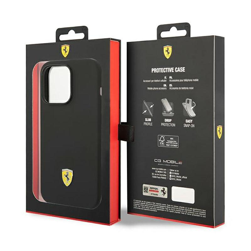 Ferrari Liquid Silicone Case Metal Logo MagSafe – Etui iPhone 14 Pro (Czarny)