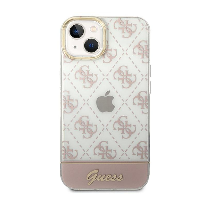 Guess 4G Stripe Script Logo Electroplated Pattern – Etui iPhone 14 (różowy)