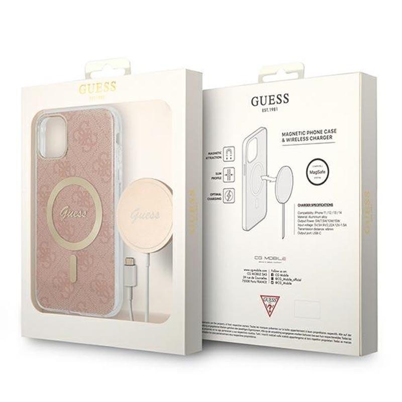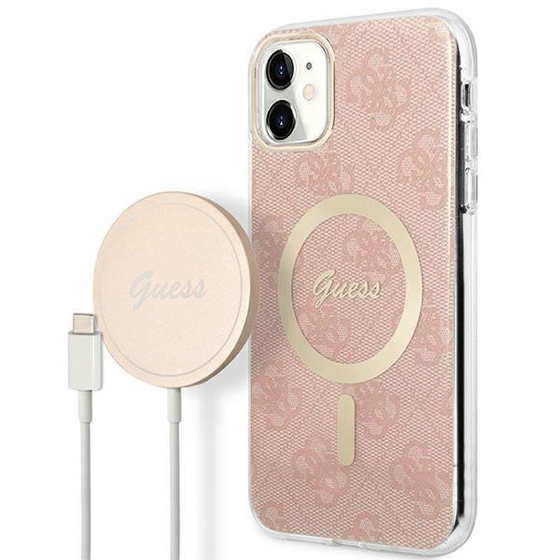 Guess Bundle Pack MagSafe 4G - Zestaw etui + ładowarka MagSafe iPhone 11 (różowy/złoty)