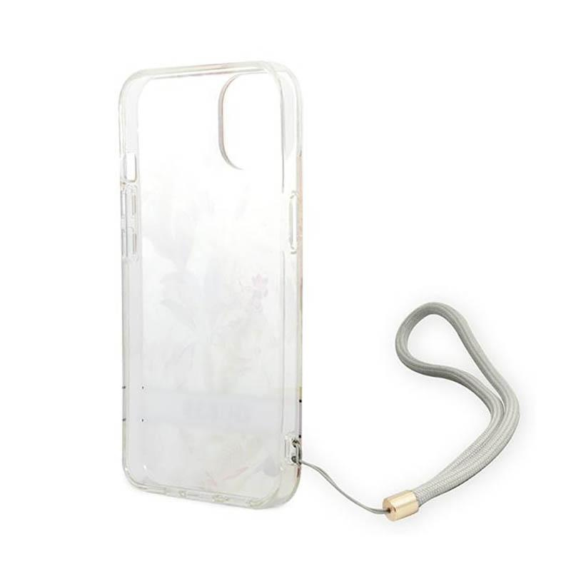 Guess Flower Cord - Etui ze smyczką iPhone 14 (fioletowy)