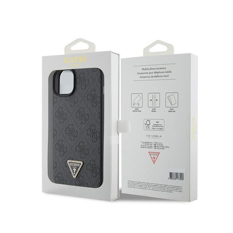 Guess Leather 4G Triangle Strass - Etui iPhone 15 (czarny)