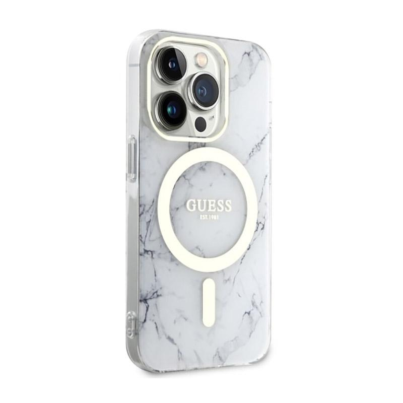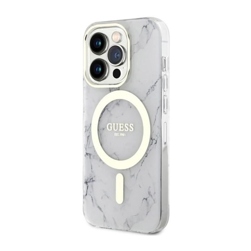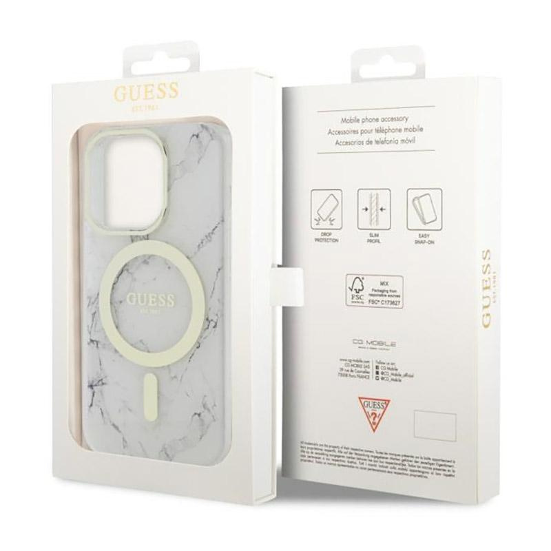 Guess Marble MagSafe - Etui iPhone 14 Pro Max (Biały)