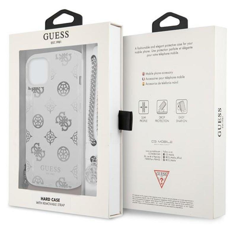 Guess Peony Chain Handle etui wykonane z wytrzymałego TPU, które cechuje wysoka przezroczystość oraz smukłość. Smartfon bezpiecznie spoczywa w perfekcyjnie wykonanej konstrukcji, która osłania go z tyłu oraz po bokach w żaden sposób nie psując estetyki urządzenia.Nawiązując do wizerunku Guess, cały tylny panel posiada wiele emblematów producenta.
