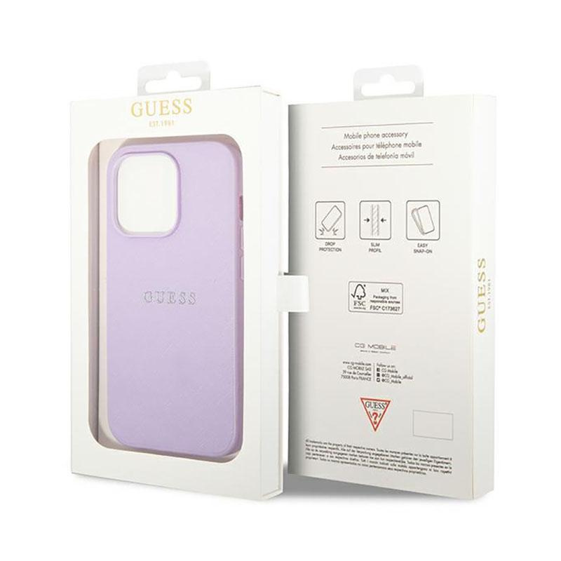 Guess Saffiano Metal Logo Stripes - Etui iPhone 14 Pro Max (liliowy)