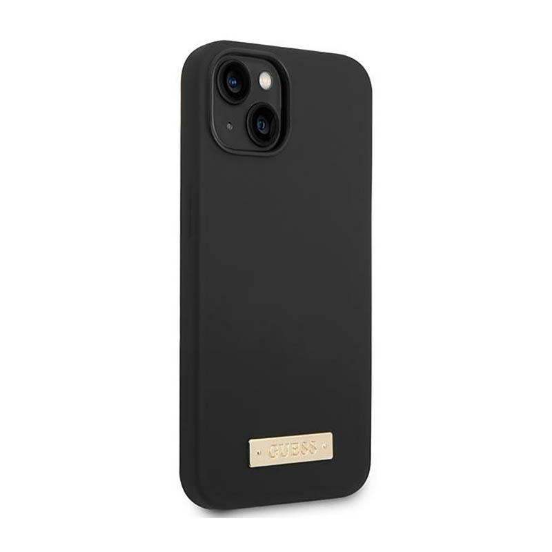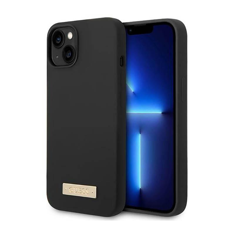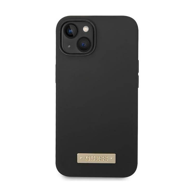 Guess Silicone Logo Plate MagSafe - Etui iPhone 14 (czarny)