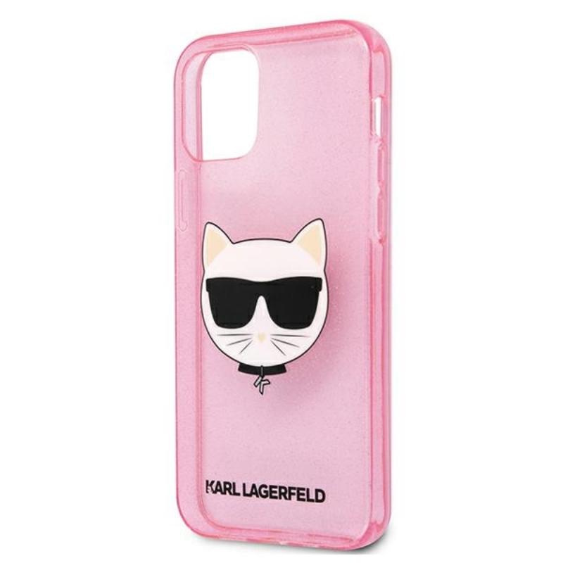 Karl Lagerfeld Choupette Head Glitter - Etui iPhone 12 / iPhone 12 Pro (różowy)