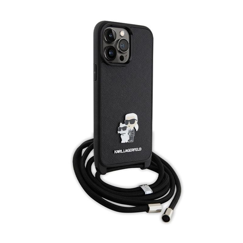 Karl Lagerfeld Crossbody Saffiano Metal Pin Karl & Choupette - Etui iPhone 14 Pro Max (czarny)