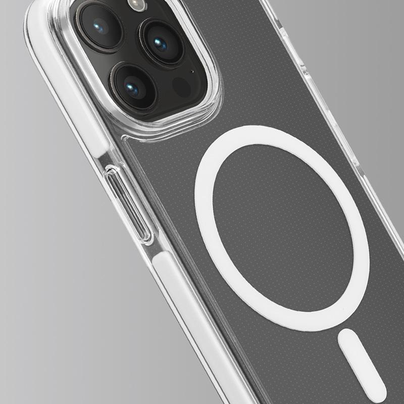 Puro LITEMAG PRO to przezroczyste etui wykonane z elastycznego materiału, które zostało wyposażone w magnetyczny pierścień kompatybilny z akcesoriami MagSafe®, umożliwiając tym samym szybkie i łatwe ładowanie.Dokładnie przylega do urządzenia oraz dodatkowo amortyzuje je w razie wstrząsów lub zarysowań. iPhone jest chroniony z czterech stron.