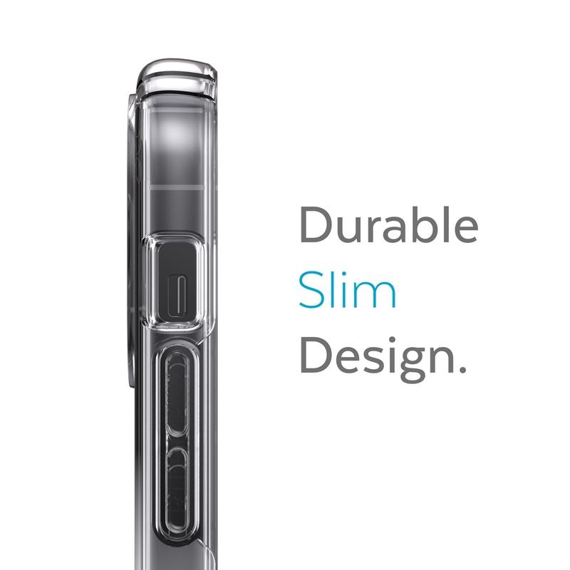 Presidio® Perfect Clear + Ombre to przezroczysta konstrukcja z efektem Ombre, odsłaniająca wszystkie walory estetyczne telefonu, jednocześnie wykorzystująca najnowszą technologię IMPACTIUM™ Shock Barrier, która chroni telefon przed uszkodzeniami podczas upadku. To wszystko dzięki dwóm warstwom: zewnętrznej, która rozprasza siłę uderzenia oraz wewnętrznej IMPACTIUM™, absorbującej wstrząs. W ten sposób etui skutecznie zabezpiecza telefon i chroni go przed uszkodzeniem. Według przeprowadzonych testów etui wytrzymuje upadek z wysokości prawie 4 m. Ponadto, Speck opatentował w swoich etui system ochrony wyświetlacza, który minimalizuje ryzyko uszkodzenia telefonu podczas upadku ekranem do dołu. Wszystkie produkty Speck są testowane pod kątem odporności na zarysowania, odporność chemiczną oraz precyzyjnego dopasowania, w celu dostarczenia wysokiej jakości etui.Idealnie przezroczysta konstrukcja nie przysłania telefonu a specjalna powłoka zapobiega przebarwieniom i żółknięciu.