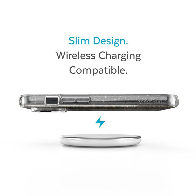 Presidio® Perfect Clear with Glitter to przezroczysta konstrukcja z wtopionymi, błyszczącymi kryształkami, odsłaniająca wszystkie walory estetyczne telefonu.Jednocześnie wykorzystująca najnowszą technologię IMPACTIUM™ Shock Barrier, która chroni telefon przed uszkodzeniami podczas upadku. To wszystko dzięki dwóm warstwom: zewnętrznej, która rozprasza siłę uderzenia oraz wewnętrznej IMPACTIUM™, absorbującej wstrząs. W ten sposób etui skutecznie zabezpiecza telefon i chroni go przed uszkodzeniem. Według przeprowadzonych testów etui wytrzymuje upadek z wysokości prawie 4 m. Ponadto, Speck opatentował w swoich etui system ochrony wyświetlacza, który minimalizuje ryzyko uszkodzenia telefonu podczas upadku ekranem do dołu. Wszystkie produkty Speck są testowane pod kątem odporności na zarysowania, odporność chemiczną oraz precyzyjnego dopasowania, w celu dostarczenia wysokiej jakości etui.Idealnie przezroczysta konstrukcja nie przysłania telefonu a specjalna powłoka zapobiega przebarwieniom i żółknięciu.