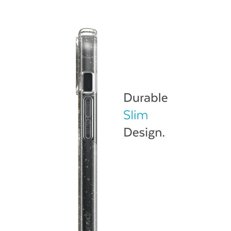 Speck Presidio Perfect-Clear with Glitter + MagSafe - Etui iPhone 14 / iPhone 13 z powłoką MICROBAN (Clear / Gold Glitter)