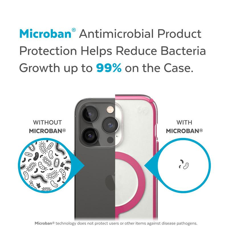 Oryginalna obudowa ochronna Speck oferuje też ochronę antybakteryjną MICROBAN® (światowy lider rozwiązań przeciwdrobnoustrojowych z szerokim portfolio ponad 25 zatwierdzonych technologii). Aktywny składnik wbudowany w strukturę etui powstrzymuje 99% bakterii, które gromadzą się na powierzchni etui. Technologia MICROBAN® zapewnia w ten sposób dożywotnią ochronę przed bakteriami powodującymi plamy i nieprzyjemne zapachy oraz działa na poziomie komórkowych, aby utrzymać czystość obudowy.