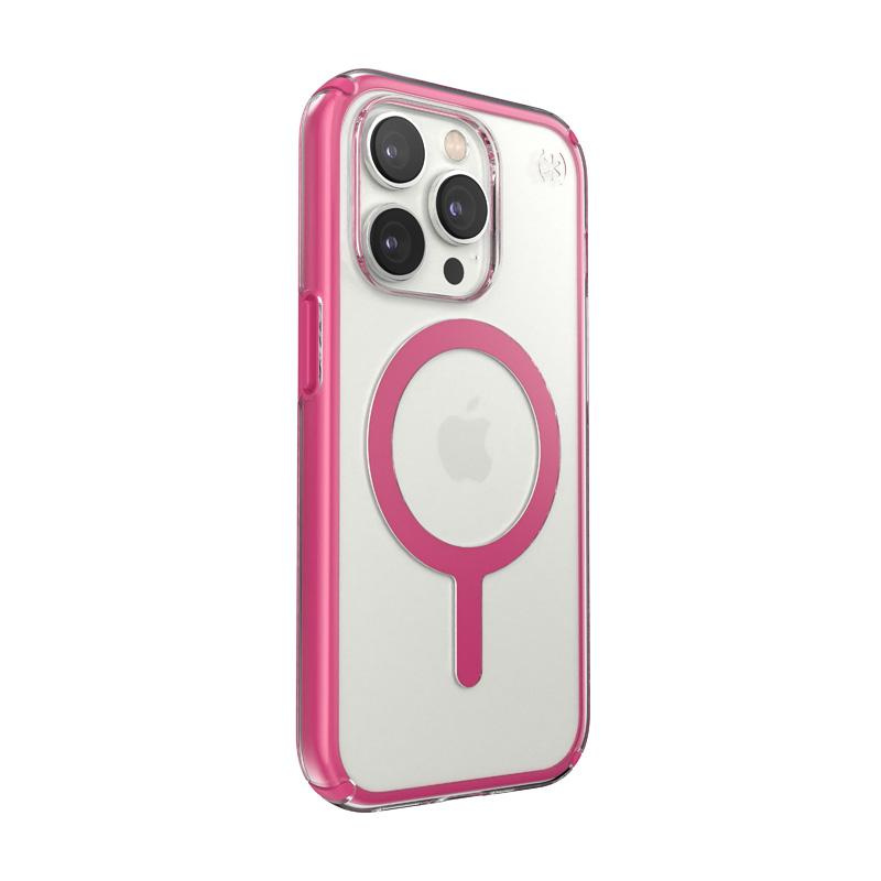 Speck Presidio Perfect-Clear with Impact Geometry + MagSafe - Etui iPhone 14 Pro z powłoką MICROBAN (Clear / Digital Pink)
