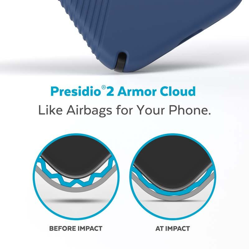 Etui Presidio2 Grip MagSafe zostało ponadto wykonane w technologii Armor Cloud™, dzięki której obudowa Speck jest odporna na upadki z wysokości nawet 4 metrów. System mikrokapsułek wewnątrz ścianek etui działa na podobnej zasadzie, co poduszki powietrze stosowane w samochodach. W momencie upadku na twarde podłoże, kapsułki amortyzują siłę uderzenia przy pomocy skompresowanego w nich powietrza.