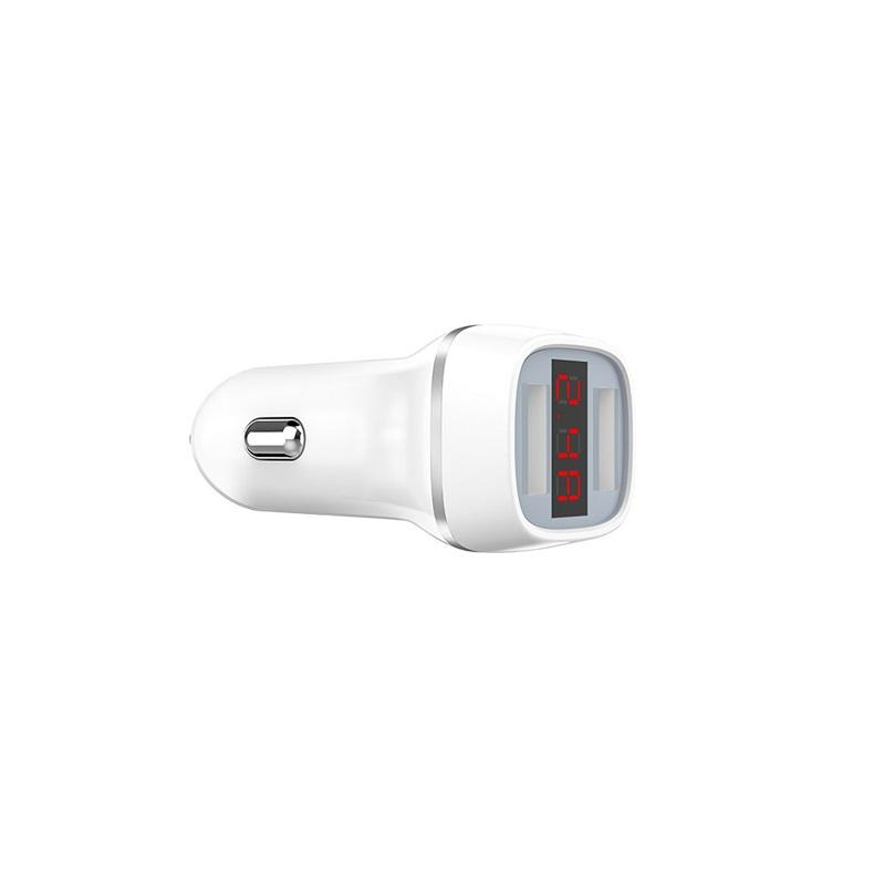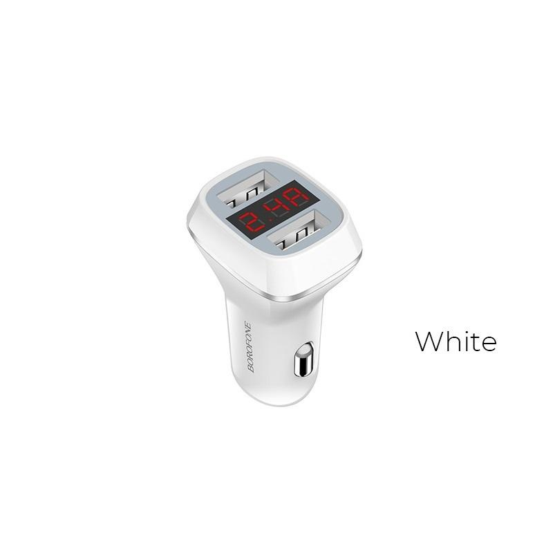 Borofone - ładowarka samochodowa 2x USB z wyświetlaczem LCD, biały