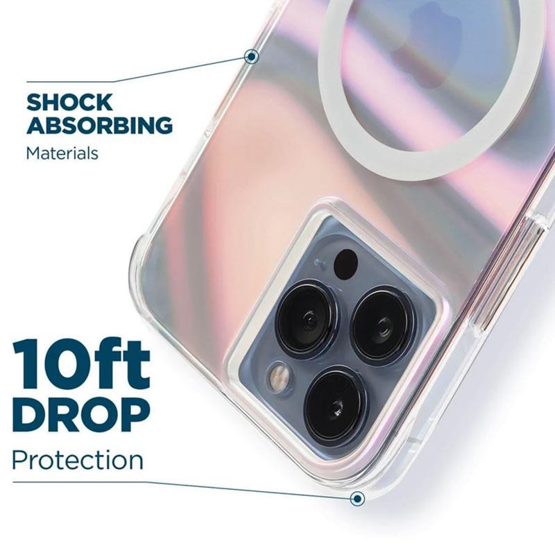Smukłe i eleganckie etui ochronne do iPhone’a 14 Pro, którego kolory mienią się w świetle i za każdym razem zachwycają swoim pięknem. Wbudowane magnesy sprawiają, że ładowarka MagSafe dopasowuje się za każdym razem precyzyjnie. Powierzchnia etui została ponadto zabezpieczona przed bakteriami, dzięki czemu pozostaje ono cały czas czyste, nie żółknie i jest przyjemne w użytkowaniu.Smukła obudowa wykonana z eko-materiałów wytrzymuje upadki z wysokości nawet 3 metrów. Etui firmy Case-Mate Soap Bubble mieniące się w świetle to obowiązkowa pozycja dla wszystkich pań, które cenią sobie elegancję oraz wyszukany styl.