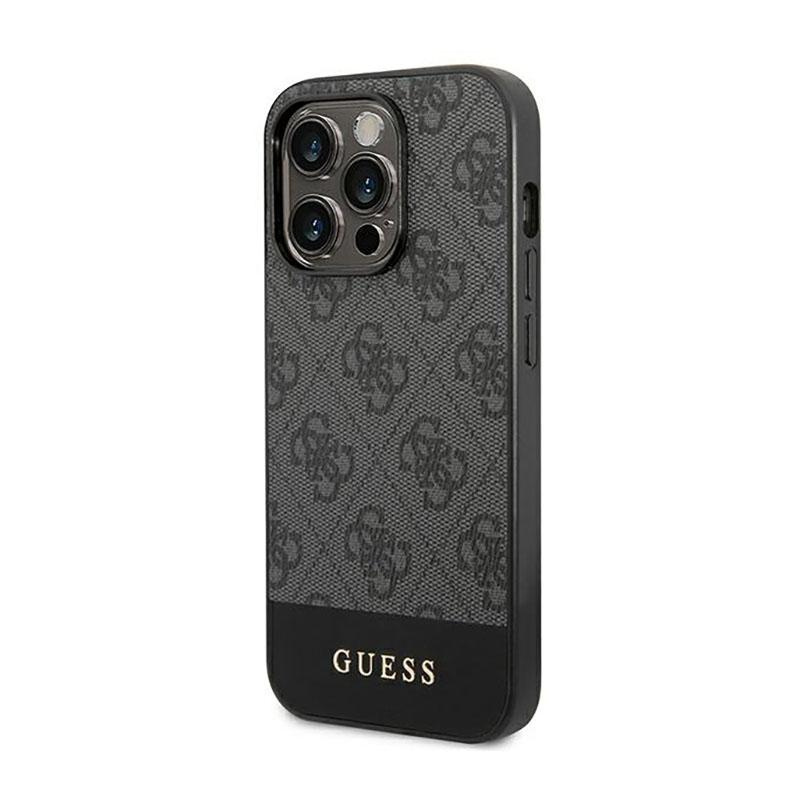 Guess 4G Bottom Stripe Metal Logo Collection - Etui iPhone 14 Pro (szary)
