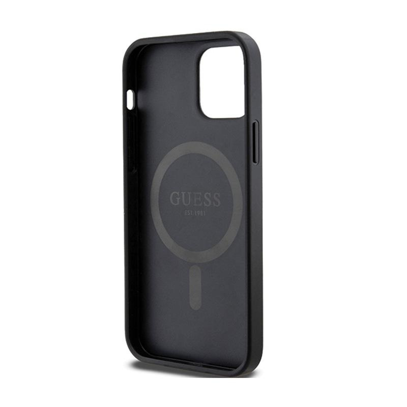 Guess 4G Collection Leather Metal Logo MagSafe - Etui iPhone 12 / iPhone 12 Pro (czarny)