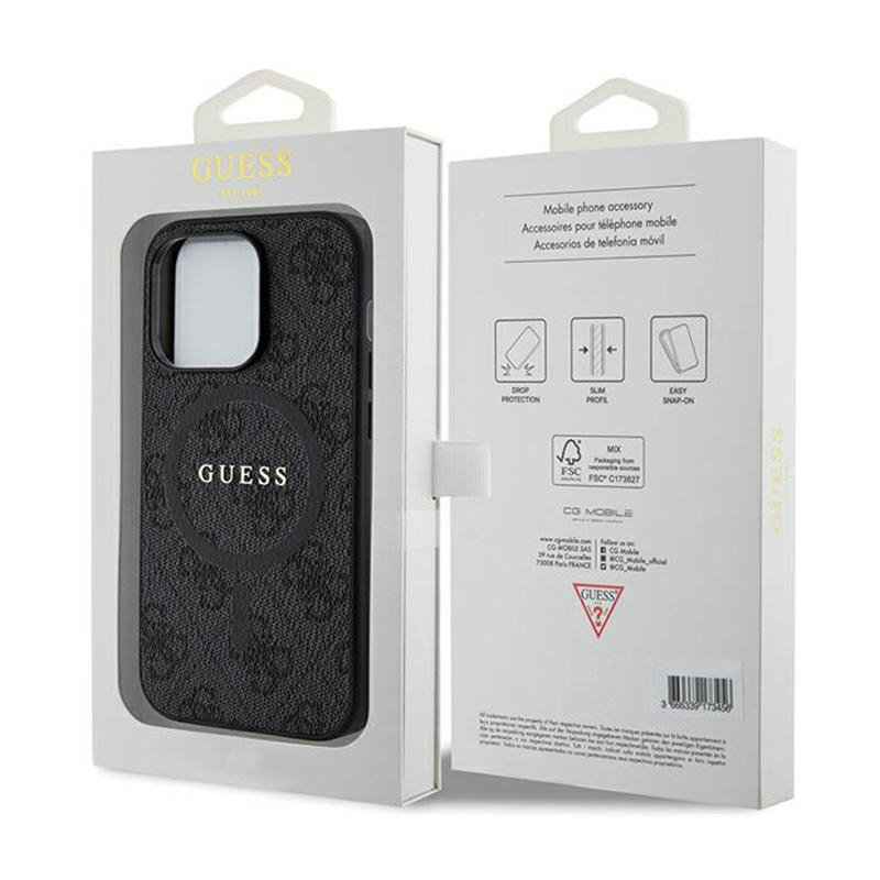 Guess 4G Collection Leather Metal Logo MagSafe - Etui iPhone 15 Pro Max (czarny)