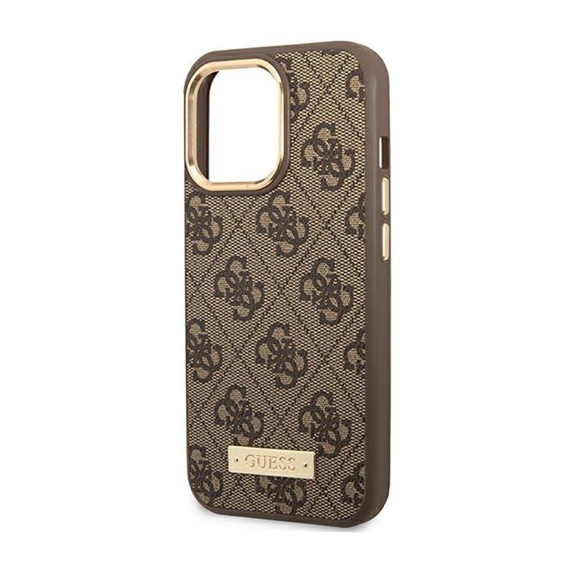 Guess 4G Logo Plate MagSafe - Etui iPhone 14 Pro Max (brązowy)