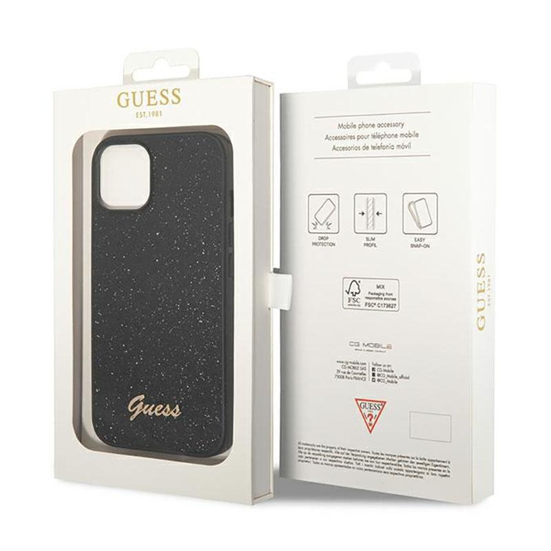 Guess Glitter Flakes Metal Logo Case – Etui iPhone 14 (czarny)