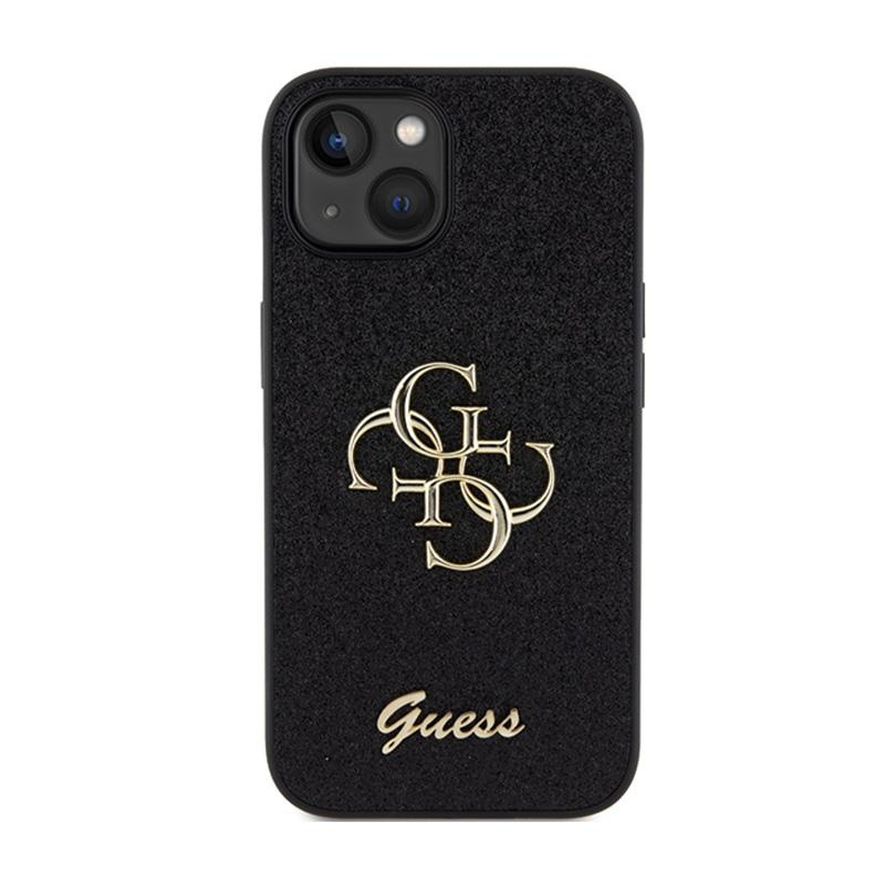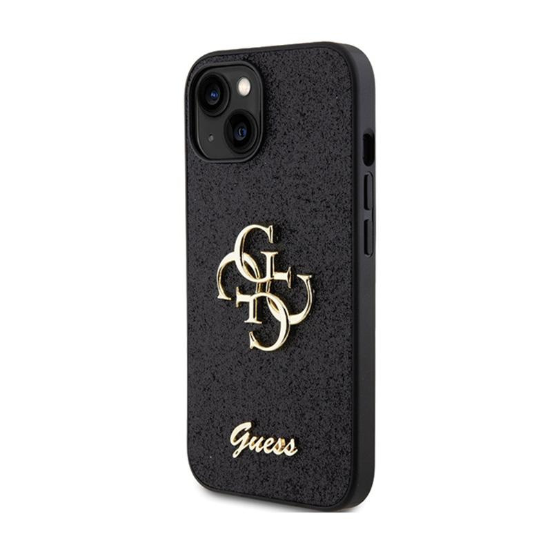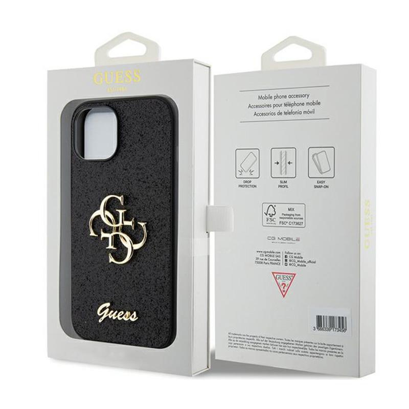 Guess Glitter Script Big 4G - Etui iPhone 15 Plus (czarny)