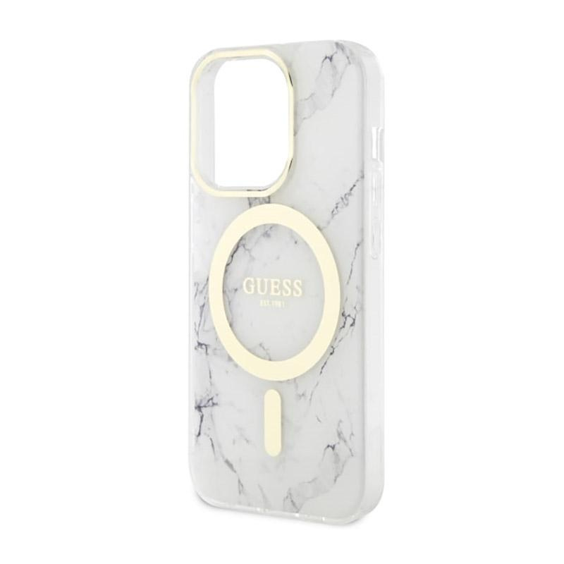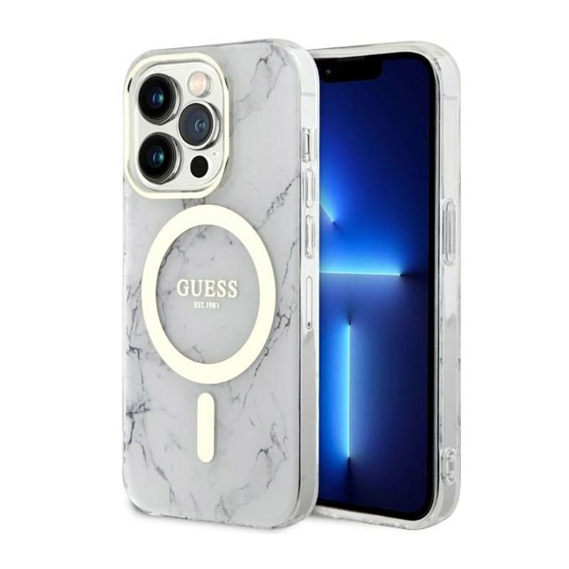 Guess Marble MagSafe - Etui iPhone 14 Pro Max (Biały)