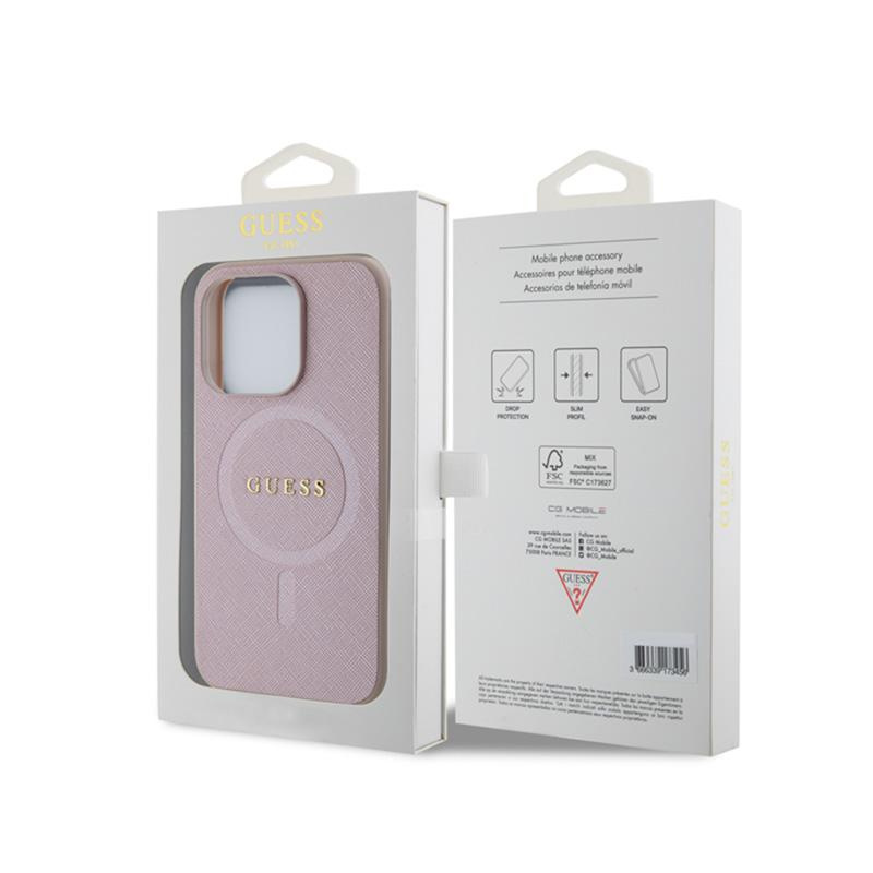 Guess Saffiano MagSafe - Etui iPhone 15 Pro (różowy)