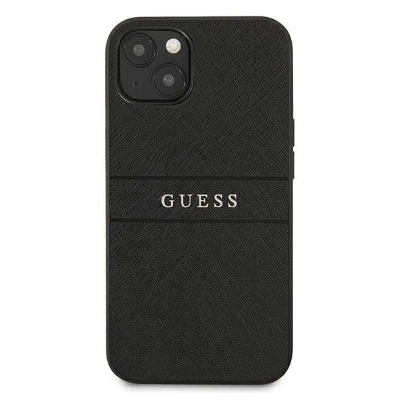Guess Saffiano Metal Logo Stripes - Etui iPhone 13 mini (czarny)