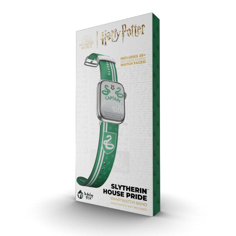 Oficjalny pasek Harry Potter z dedykowanymi tarczami dla Apple Watch to prawdziwa gratka dla wszystkich fanów młodego czarodzieja oraz słynnego domu Slytherin. Pasek wykonany został z wysokiej jakości silikonu odpornego na pot oraz promienie UV. W zestawie znajduje się komplet konektorów do zegarka Apple w rozmiarze 38/40/41mm oraz 42/44/45/49mm. Pasek można również zainstalować do smartwatcha Android z gniazdem 22mm.Po ściągnięciu aplikacji MobyFace dla iOS, użytkownik może zgrać dedykowane tarcze na zegarek Apple Watch. W tym celu należy zeskanować kod QR umiejscowiony pod gąbką zabezpieczającą pasek w firmowym opakowaniu.