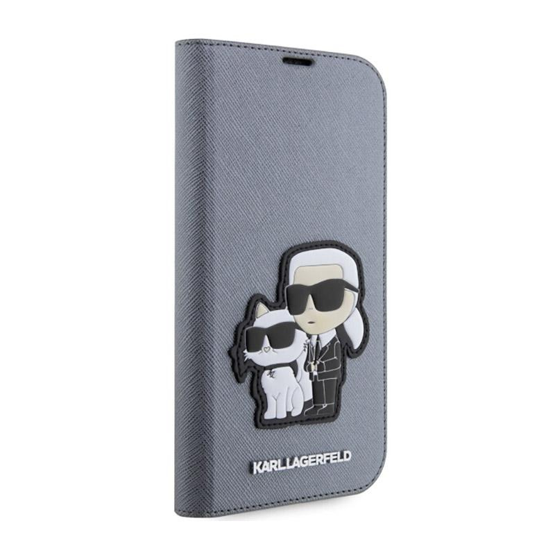 Karl Lagerfeld Booktype NFT Saffiano Karl & Choupette - Etui iPhone 14 Pro (Srebrny)