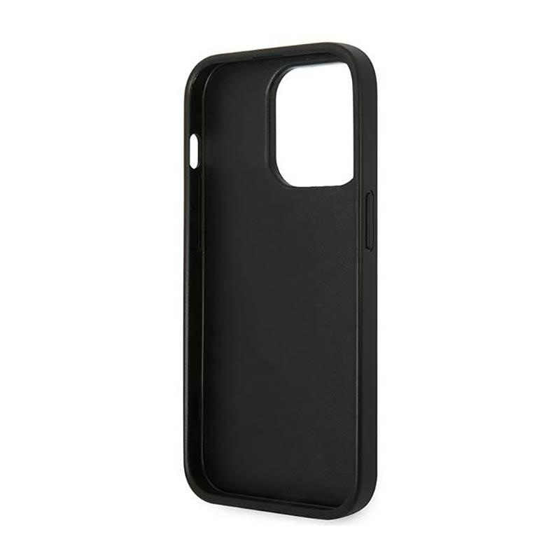 Karl Lagerfeld Glitter Flakes Ikonik to etui, którego konstrukcja została wykonana z wysokiej klasy materiałów i ozdobione naszytą grafiką projektanta, dodatkowego uroku dodaje zatopiony mieniący się czarny brokat.