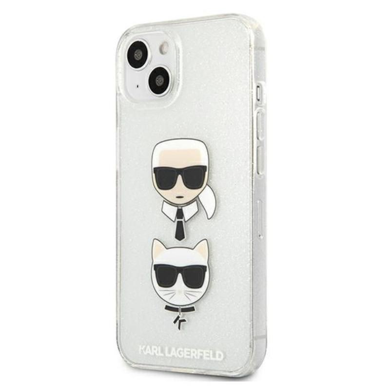 Karl Lagerfeld Glitter Karl & Choupette Head - Etui iPhone 13 (srebrny)
