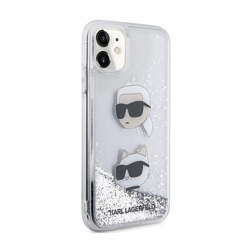 Karl Lagerfeld Liquid Glitter Karl & Choupette Heads - Etui iPhone 11 (srebrny)