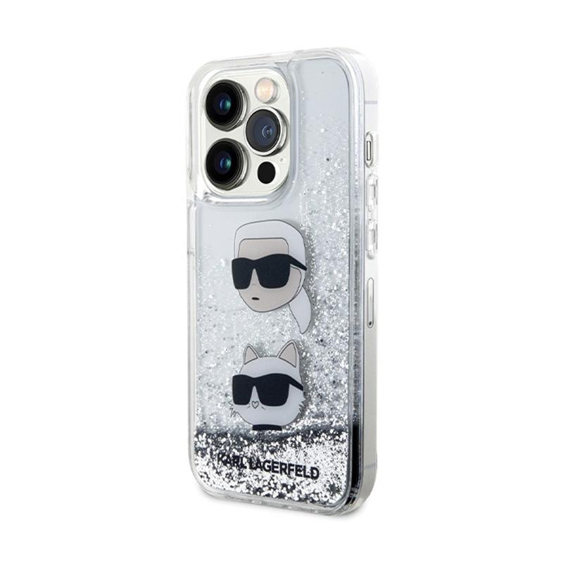 Karl Lagerfeld Liquid Glitter Karl & Choupette Heads - Etui iPhone 14 Pro (srebrny)