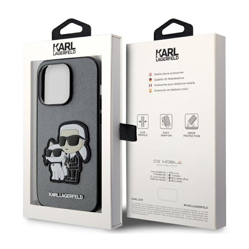 Karl Lagerfeld NFT Saffiano Karl & Choupette - Etui iPhone 14 Pro (Srebrny)