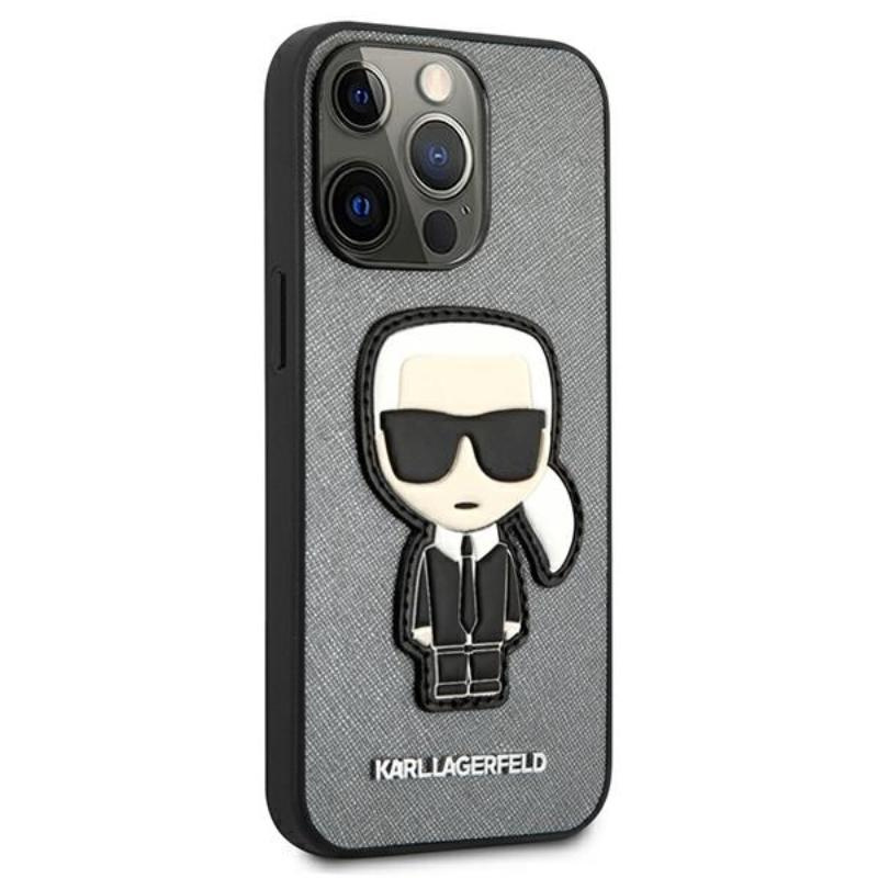 Karl Lagerfeld Saffiano Ikonik Patch - Etui iPhone 13 Pro (srebrny)