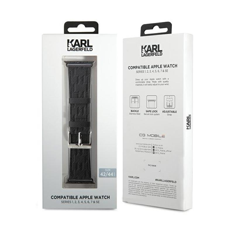 Karl Lagerfeld Saffiano Monogram - Pasek do Apple Watch 42/44/45/49 mm (czarny)