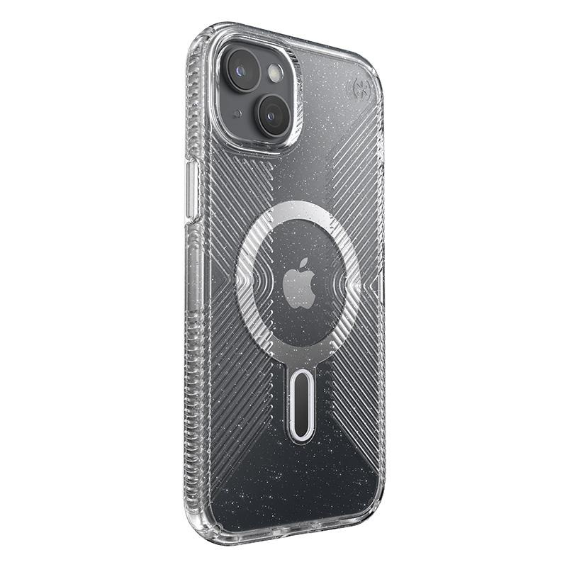Speck Presidio Lux Grip ClickLock & Magsafe - Etui iPhone 15 Plus (Clear / Chrome Finish / Serene Silver)