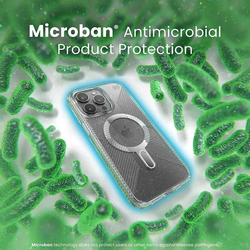 Oryginalna obudowa ochronna Perfect-Clear Grip oferuje również ochronę antybakteryjną MICROBAN® (światowy lider rozwiązań przeciwdrobnoustrojowych z szerokim portfolio ponad 25 zatwierdzonych technologii). Aktywny składnik wbudowany w strukturę etui powstrzymuje 99% bakterii, które gromadzą się na powierzchni etui. Technologia MICROBAN® zapewnia w ten sposób dożywotnią ochronę przed bakteriami powodującymi plamy i nieprzyjemne zapachy oraz działa na poziomie komórkowym, aby utrzymać czystość obudowy.