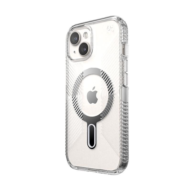 Speck Presidio Perfect-Clear Grip ClickLock & Magsafe - Etui iPhone 15 (Clear / Chrome Finish / Serene Silver)