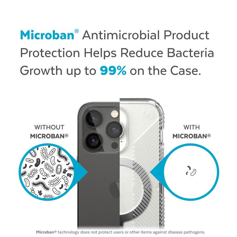 Oryginalna obudowa ochronna Speck oferuje też ochronę antybakteryjną MICROBAN® (światowy lider rozwiązań przeciwdrobnoustrojowych z szerokim portfolio ponad 25 zatwierdzonych technologii). Aktywny składnik wbudowany w strukturę etui powstrzymuje 99% bakterii, które gromadzą się na powierzchni etui. Technologia MICROBAN® zapewnia w ten sposób dożywotnią ochronę przed bakteriami powodującymi plamy i nieprzyjemne zapachy oraz działa na poziomie komórkowych, aby utrzymać czystość obudowy.
