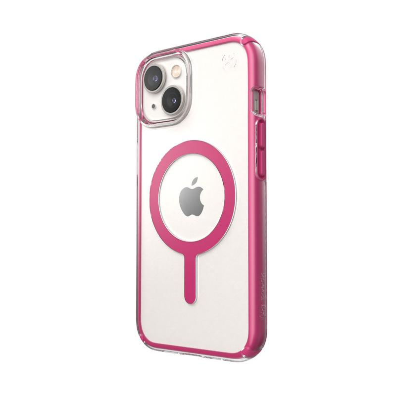 Speck Presidio Perfect-Clear with Impact Geometry + MagSafe - Etui iPhone 14 / iPhone 13 z powłoką MICROBAN (Clear / Digital Pink)