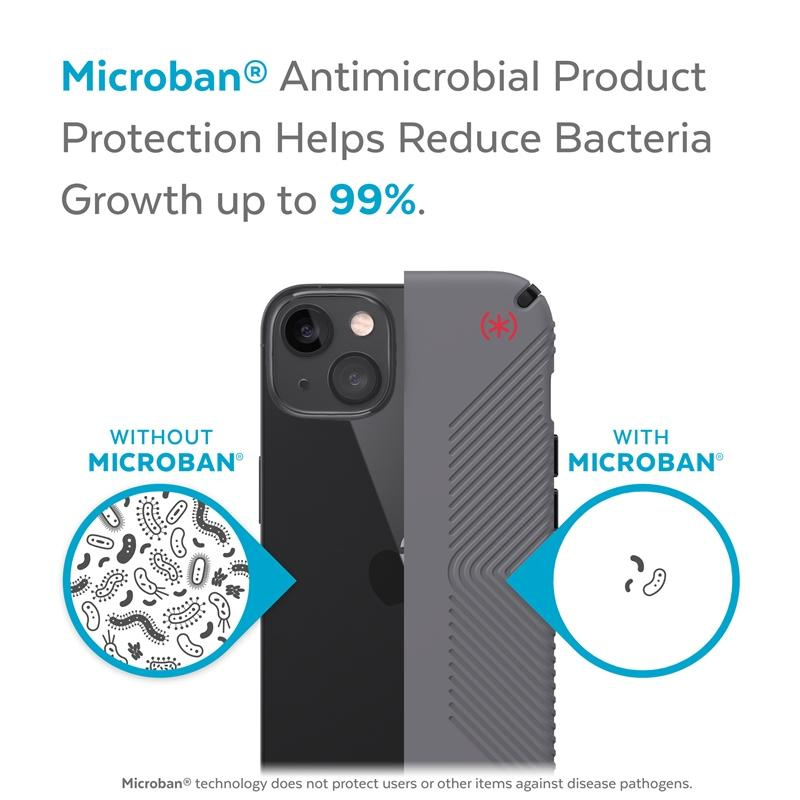 Oryginalna obudowa ochronna Speck z serii Presidio2 Grip oferuje też ochronę antybakteryjną MICROBAN® (światowy lider rozwiązań przeciwdrobnoustrojowych z szerokim portfolio ponad 25 zatwierdzonych technologii). Aktywny składnik wbudowany w strukturę etui powstrzymuje 99% bakterii, które gromadzą się na powierzchni etui. Technologia MICROBAN® zapewnia w ten sposób dożywotnią ochronę przed bakteriami powodującymi plamy i nieprzyjemne zapachy oraz działa na poziomie komórkowych, aby utrzymać czystość obudowy.