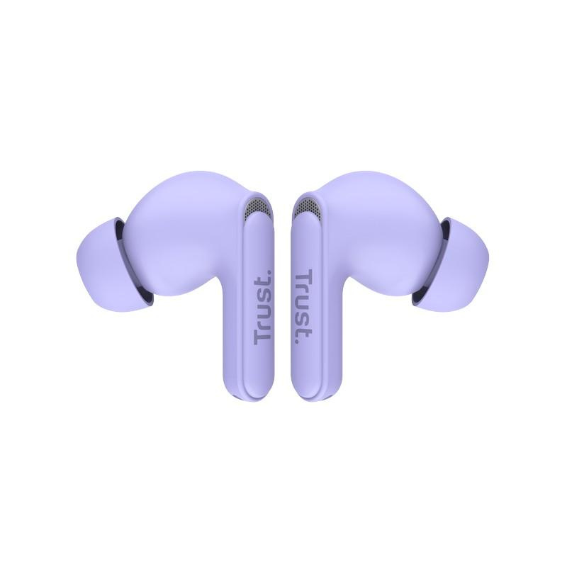 Trust Yavi - Bezprzewodowe słuchawki dokanałowe Bluetooth TWS z etui ładującym & ENC (Fioletowy)