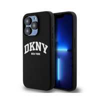 DKNY Liquid Silicone White Printed Logo MagSafe - Etui iPhone 15 Pro (czarny)